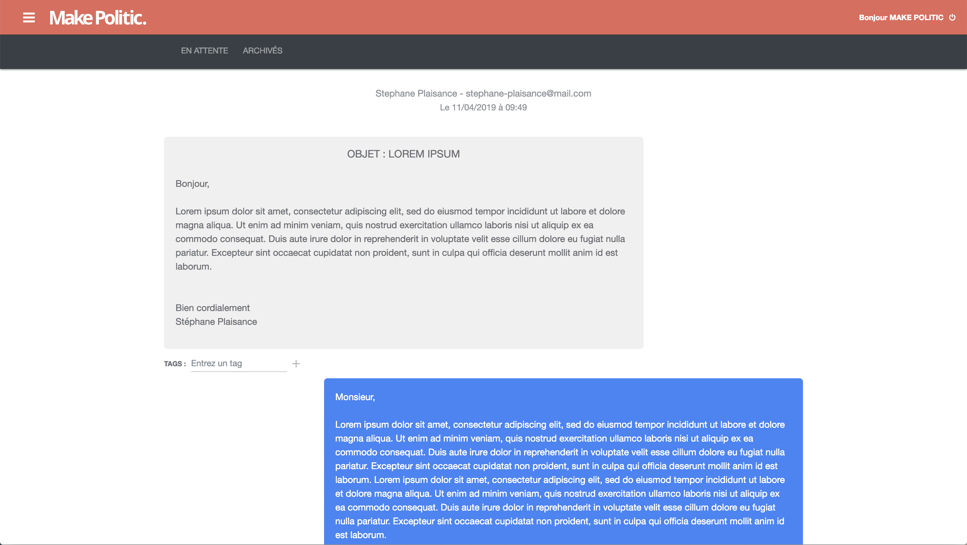 Conformément aux articles 38 et 39 du Règlement, le délégué à la protection des données à caractère personnel ou le service responsable de la protection des données personnelles de Beyond Horizon SAS peut être contacté aux coordonnées suivantes : dpo@makepolitic.fr.